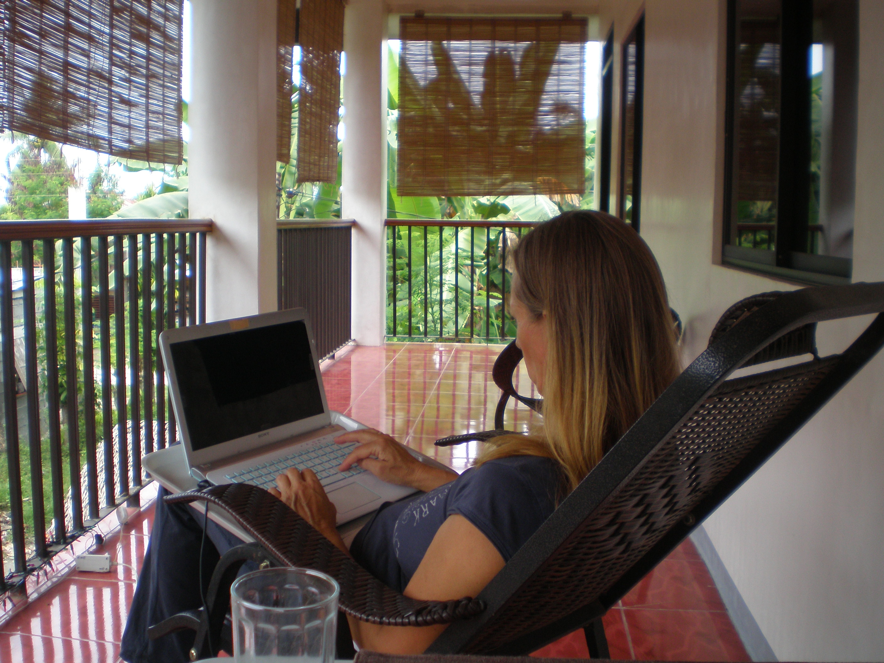 Me working on the balcony. The internet is not so good here and sometimes it makes me crazy but i manage anyway. We live temporary in an apartment because som russian people wanted to rent the house up on the hill. That was okay for us and it´s more fun here with all the philippin people. It´s like looking at a fun movie when looking in to their lifes…