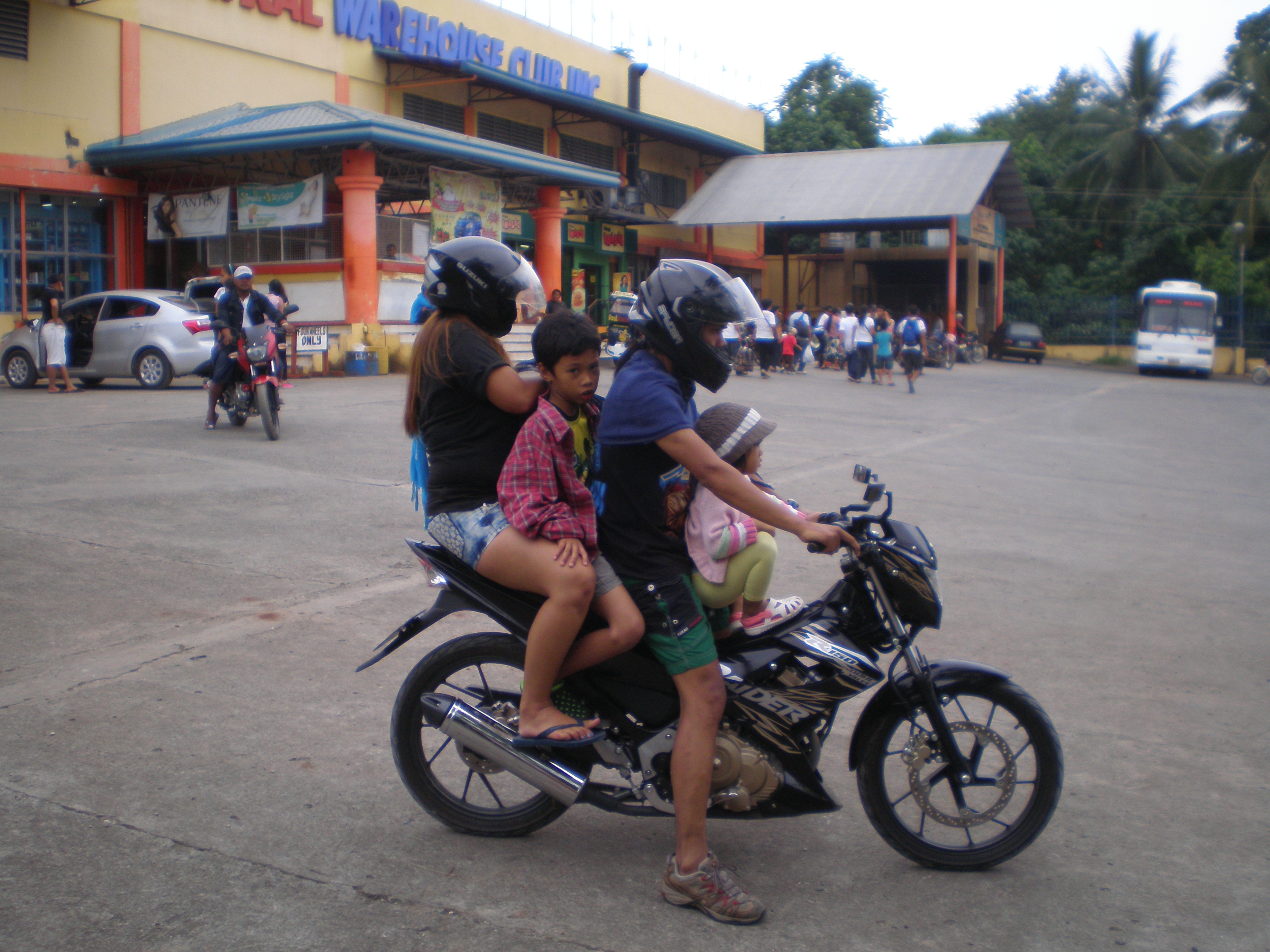 The little girl had her “siesta”, a midafternoon snooze in the hammock with her family around at the terrace. They take what they have and make the best of it and the girl slept good in there. Really amazing! The most philippin people doesn´t like the sun and covers them self with clothes all over to get shadow, even the face sometimes. Umbrella when they are going with the tricycles is common too! Here you also see a hole family on the motorbike, This is normal and up to 5 persons can sit at the same time, no problem for the philippines. This is the biggest “mall” at our island, I found some things I needed.